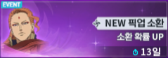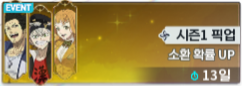 추천도 : ★★★★★ 클로버 학원 시즌1 한정 캐릭터가 확률UP되어 있어 추천합니다. 유일한 천장있어 게임을 진행하면 천장으로 획득할 수 있씁니다. |