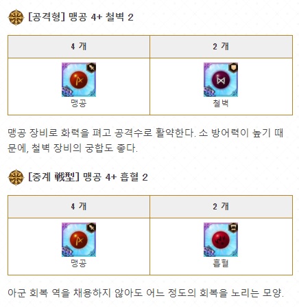 마지막으로는 아이템 셋팅입니다. PVP용으로 사용을 하기때문에 이역시 맹공과 철벽으로 셋팅을 해줍니다.