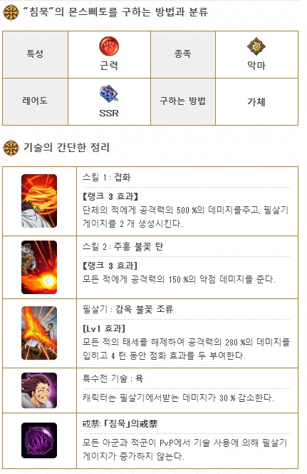 일곱개의대죄 십계 침묵의 몬피스토의 최초등급은 SSR 속성은 근력 종족은 마신입니다.