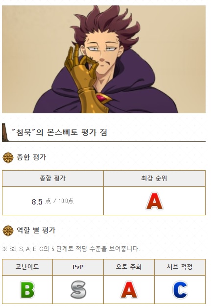 일곱개의대죄 몬스피토 평점은 8.5점 종합평가 A를 받고 있습니다. 준수한정도