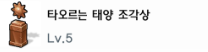 타오르는 태양 조각상 - 붉은 태양석이라는 재료가 소모됩니다. 불땅에서 얻을수 있습니다. 공격력 60/80/100/120이 증가를하며, 상어보다 확실하게 쉽긴합니다. 토파즈라는 재료가 안들어가기 때문에