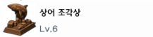 상어 조각상 - 상어역시도 2번 대작을 만들어야 합니다. 세트옵때문에 좀 조각저렙때 대작을 두번 성공을 해두긴했음. 한 10트라이 내로 2번정도 나왔던걸로 기억 물공이 800/100/120/140이 올라갑니다. 재료가 대략 구리주괴 반짝이는 허물 토파즈가 들어가는데 만들때만해도 정말 어려웠다고 느껴지는데 지금은 쌓인 구리주괴를 보니 난이도는 중하로 보임.