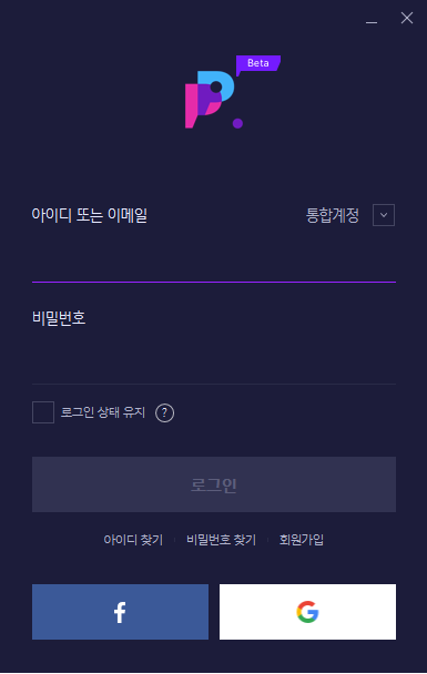 퍼플실행시 위와같은 화면이 나옵니다. 아이디 또는 이메일을 입력하라고해서 NC통합계정을 말하는건가?하고 생각을 했습니다. 기존에 nc회원이었기 때문에 저는 nc아이디로 로그인을하였고 그외의방법은 페이스북이나 구글 아이디로도 연동이 가능한것 같습니다. 이건 해보지 않았는데 마크가 있어서 가능해보였어요.