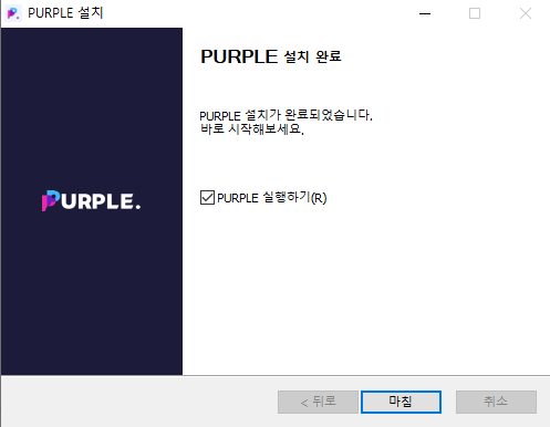 간단하게 퍼플을 설치를 완료 하였습니다. 다운로드부터 설치까지는 정말 쉽게 진행을 하실수 있을거라고 생각을 합니다. 마침을 눌러서 퍼플을 실행을 해줍니다.