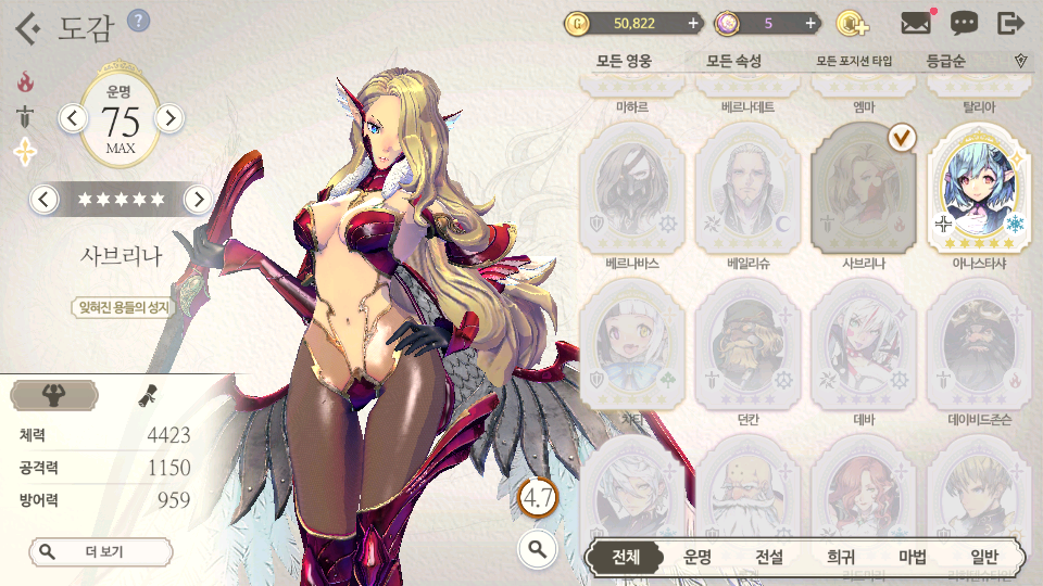 스토리S 레이드S+ PVP S+ 총평S 엑소스히어로즈 레이드와 PVP컨텐츠에서 우수한 모습을 보여주는 사브리나 입니다.