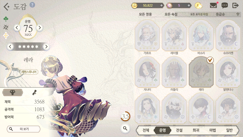 그외는 3티어 이하로 정리했습니다. 총 운명 25캐릭을 대상으로 정리를 하였음.