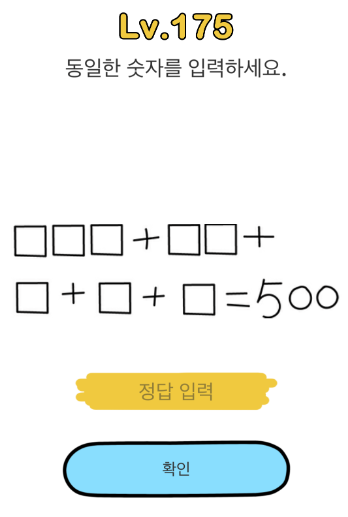 해설 : 동일한 수를 입력해서 500을 만드는 문제였다. 100단위 1개 10단위 1개 1단위 3개였다.