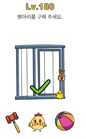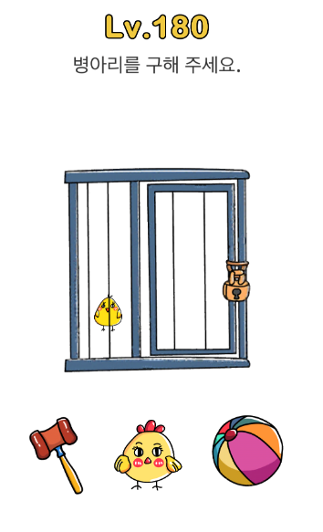 해설 : 철장안속 병아리를 구하는 문제 보기는 3개 망치 엄마닭 공이 있지만 소용이 없다.
