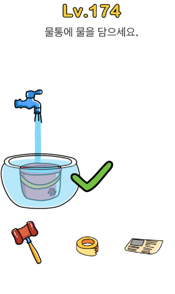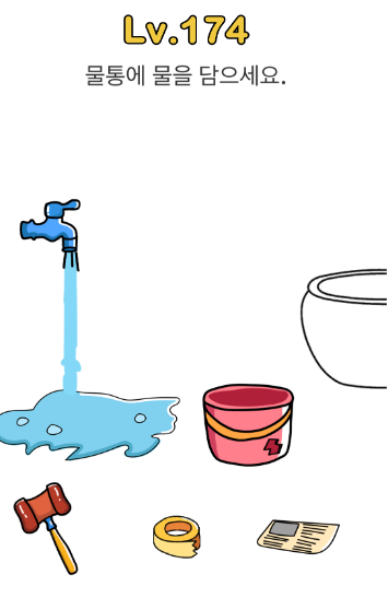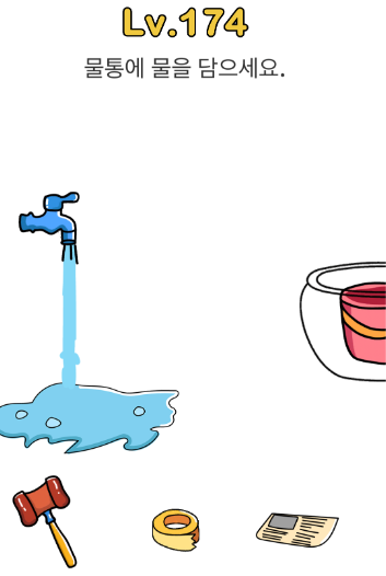 해설 : 물토엥 물을 담는문제. 빨간통이나 흰통으로는 물을 담을 수 없었음.