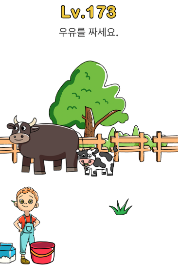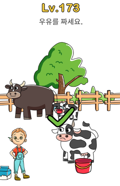 빨간통을 드래그해서 갈색소에게 지속적으로 갔다주면 어미소가 등장을 한다. 이때 빨간통을 어미 젖소에게 주면 완료.