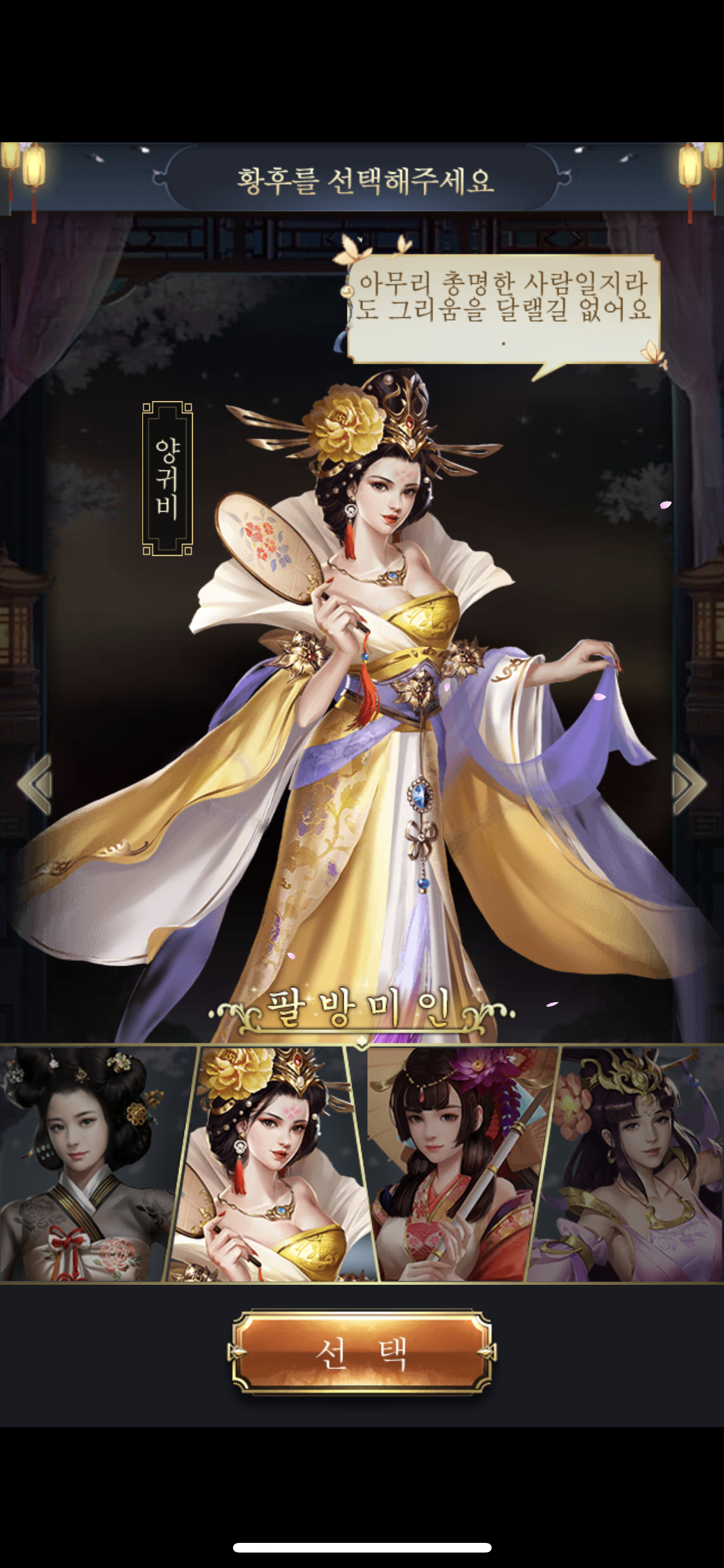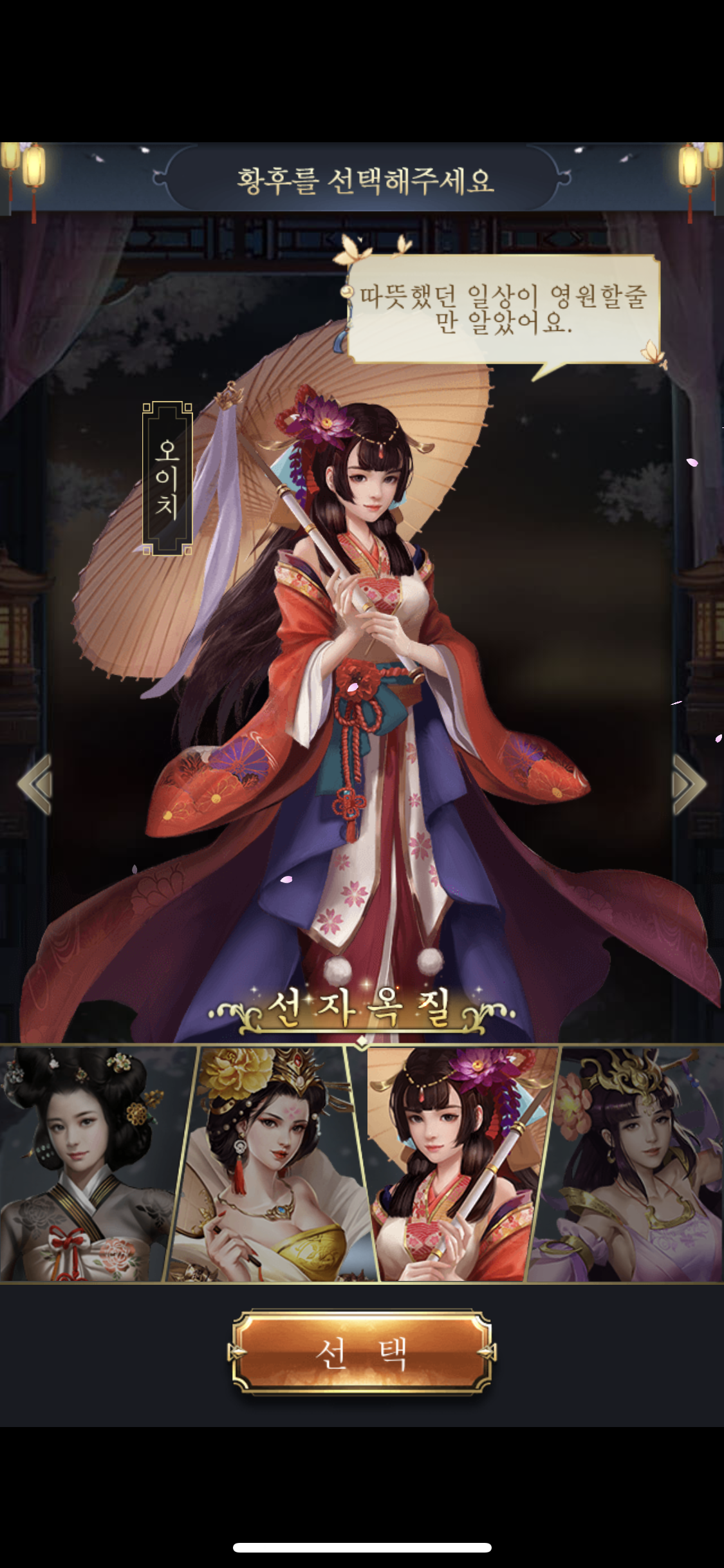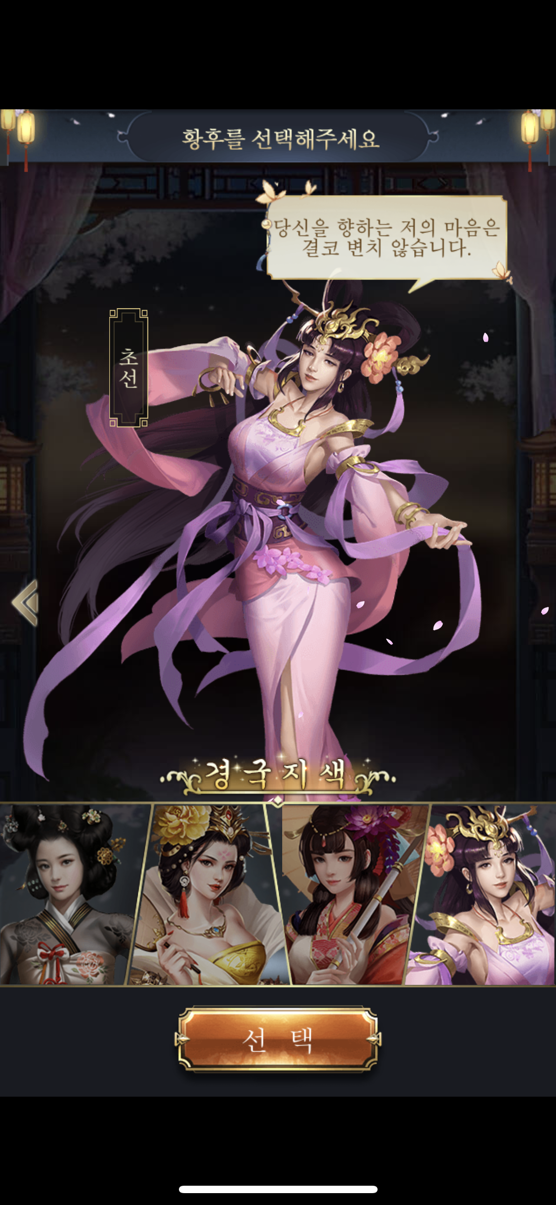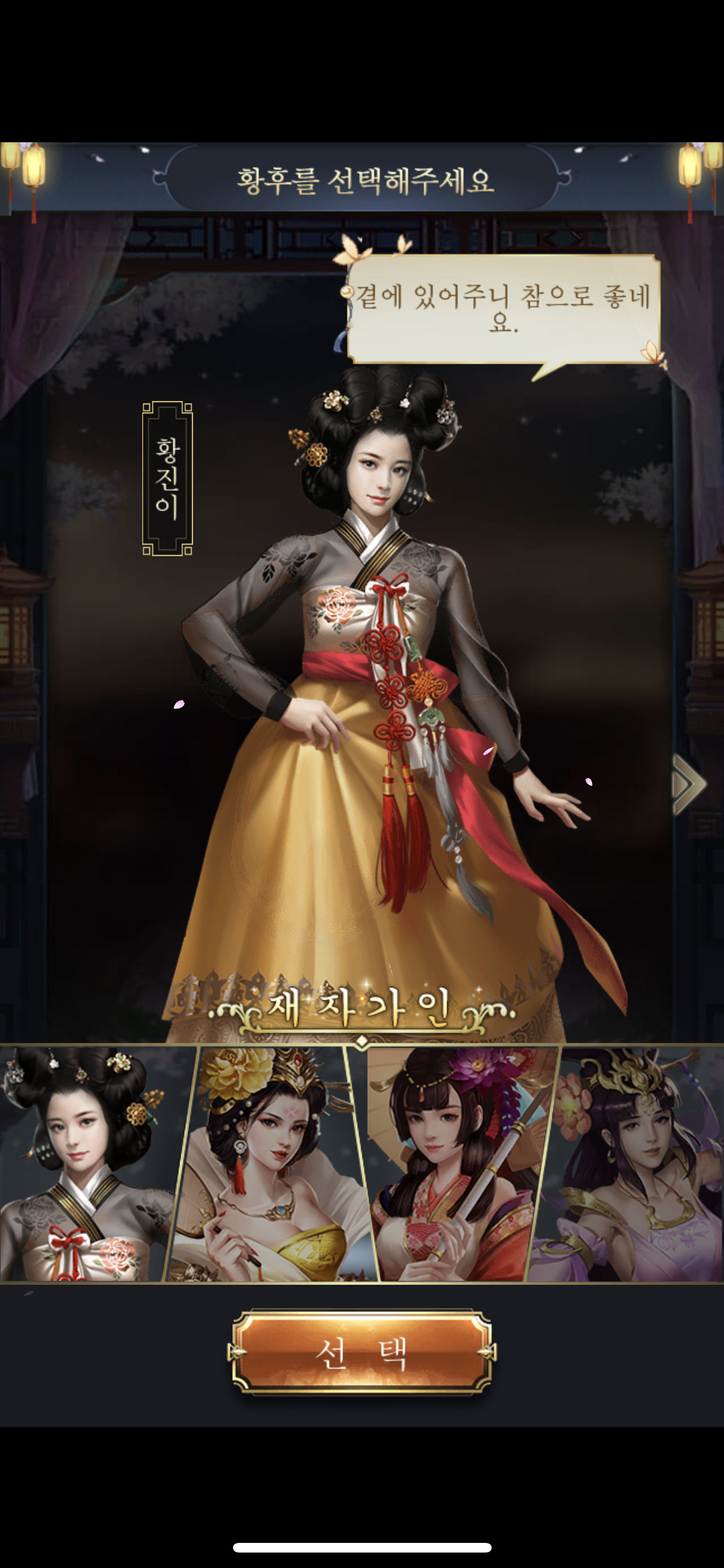 이전에 리뷰를 했던 게임 왕비의맛과 꽤 비슷한느낌이 납니다. 캐릭터를 선택 후 황후를 선택 할 수가 있습니다.