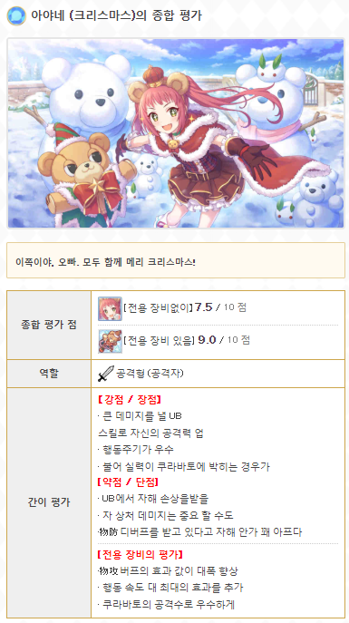 이번시간은 프린세스커넥트 성탄 아야네 대한 분석글입니다.