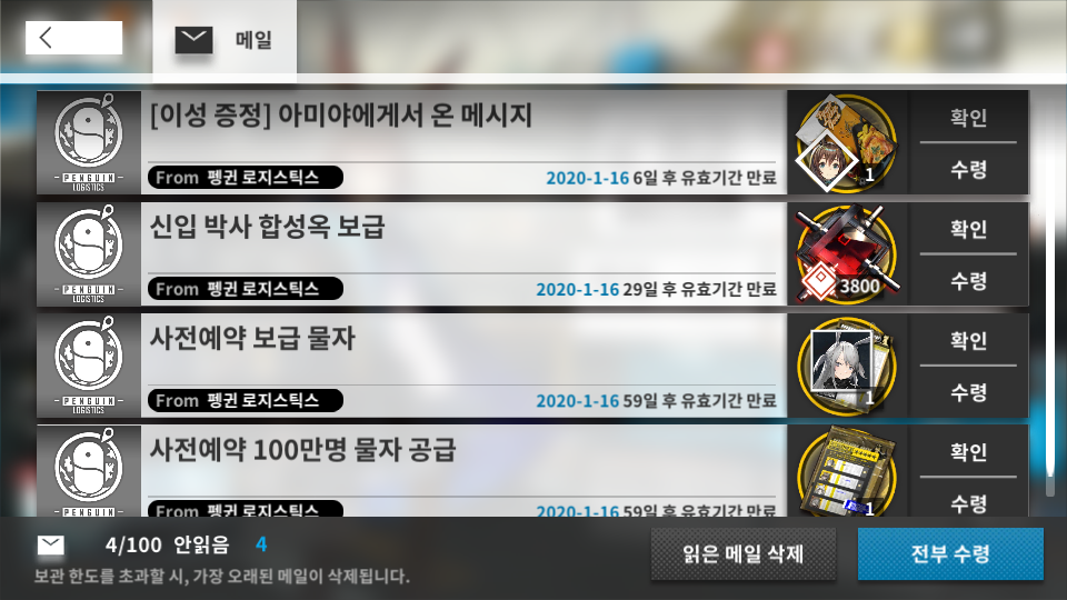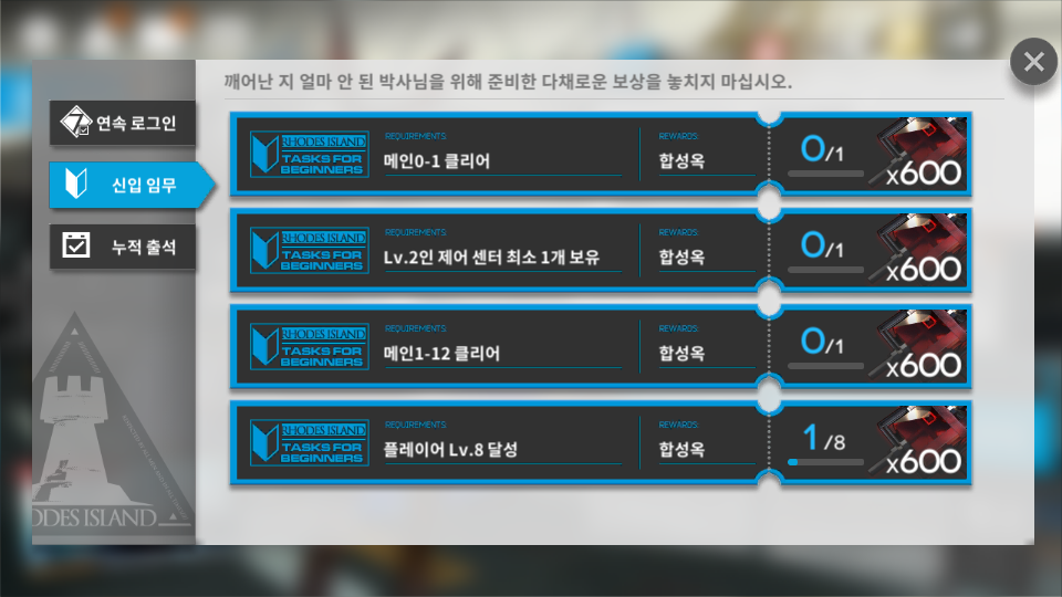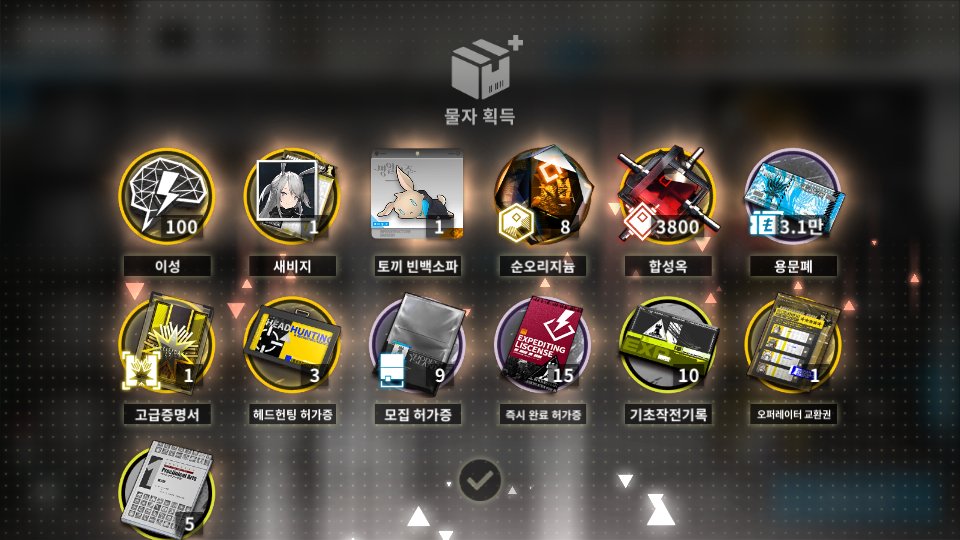 명일방주 사전예약을 안해도 보상이 들어와있다. 합성옥 3800개와 새비지등이 들어와있다. 그리고 임무를 통해서 추가적으로 합성옥을 받을수있음. 딱 10번 가챠가 가능한 합성옥이 들어온다. 생각보다 오픈초기여서 다양한 아이템을 많이준다 모두 보관을 해주자.