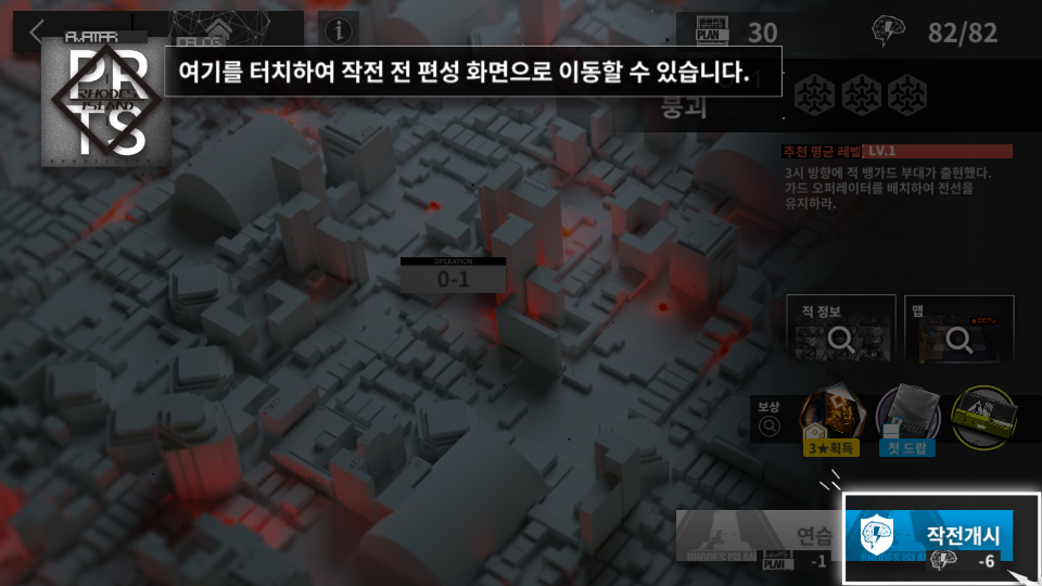 다음에 팀편성을 완료를하고 본격적으로 스테이지 0-1을 클리어를 하러 간다. 허점이 존재하는데 꼭 완료를 하지않아도 된다. 0-1을 시작할때 작전을 포기하고 다시 메인화면으로 돌아가주자. 이유는 10가챠를 하기 위해서다.