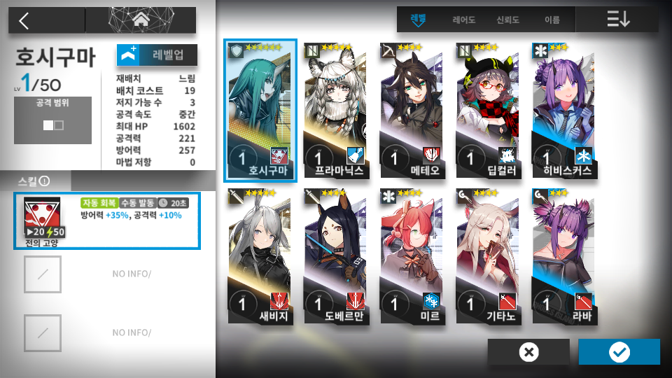 A등급에서는 호시구마 한가지다. 탱커형 캐릭터로 스킬로 공격력과 방어력을 올려준다.
