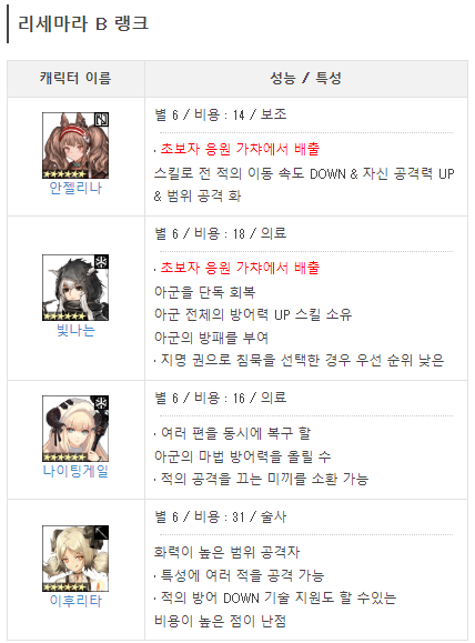 명일방주 리세마라 등급표 S~B랭크(10연차 기준으로 설명)