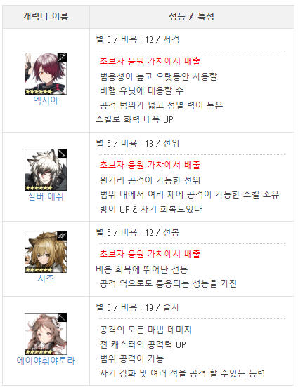 대부분 명일방주 글로벌에서 플레이를 했던 유저들은 엑시아와 실버애쉬로 시작을 하길 권하고 있다. 참고하자.