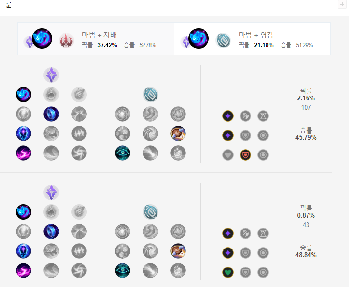 마법 + 지배 / 마법 + 영감을 주로 선택을 합니다.