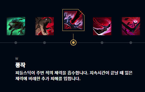 W스킬은 풍작 주변 적의 체력을 흡수합니다. 일명 빨대였는데 근처 적에게 모두 빨대가 꼽힙니다.