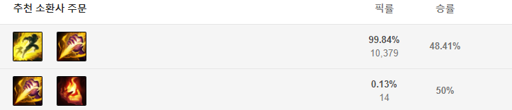 게임내에서 소환사 주문은 점멸을 기본으로 강타를 드는게 일반적입니다. 강타와 점화는 그닥 추천을 드리진 않습니다.