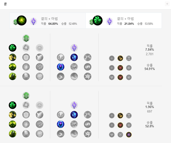 1번룬은 결의+마법으로 여진을 메인으로 드는 룬입니다.
