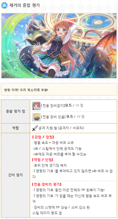 단점은 1스킬의 영령의 가호가 없을땐 ub를 사용할때 마공 버프를 줄수 없다는 점.