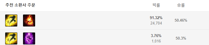 요네의 추천 소환사 주문은 기본 점멸과 점화다. 라인전에 조금 더 힘을 주기 위함이다.