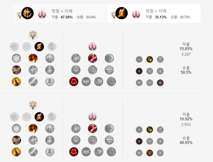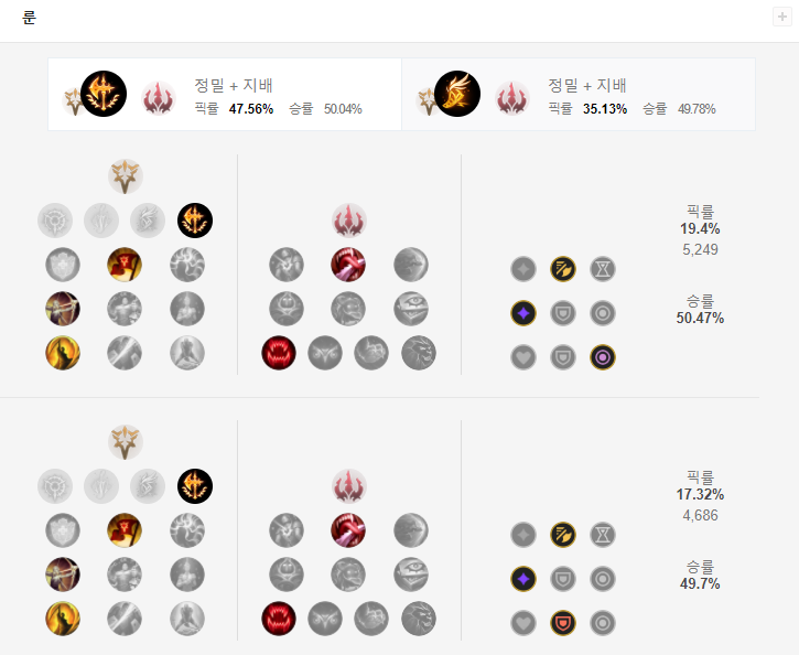 요네 1번룬은 정밀 + 지배다. 정복자 자체가 오랜 전투에서 빛을 보긴한다. 탑으로 갈때는 어느정도 쏠쏠한감이 있는데 미드는 조금 애매한면이 있지만, 스택쌓고 피흡외에도 능력치가 오르기때문에 순간적으로 가장 많이 사용을 한다.