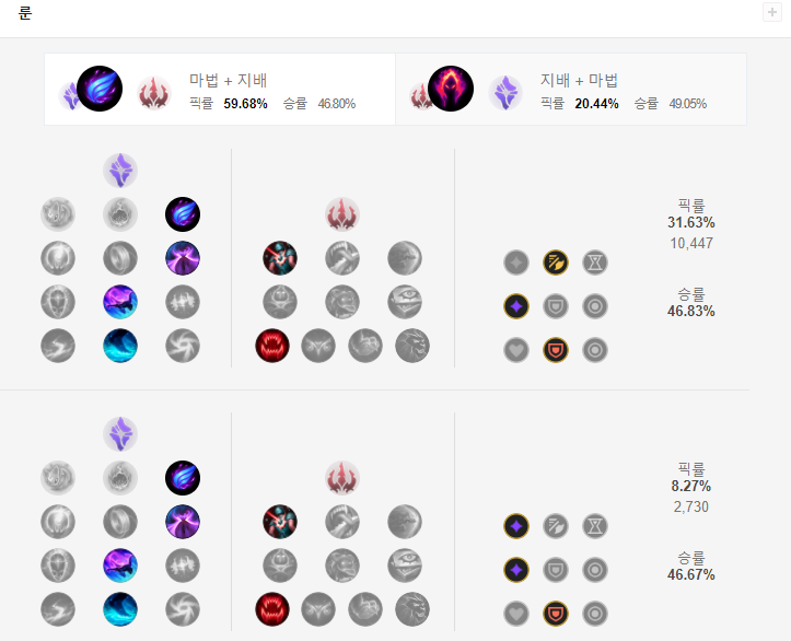 마법의 난입을 사용을한다. 하위룬도 이속과 관련이 되있어서 한타시에 치고빠지기에 능해진다.