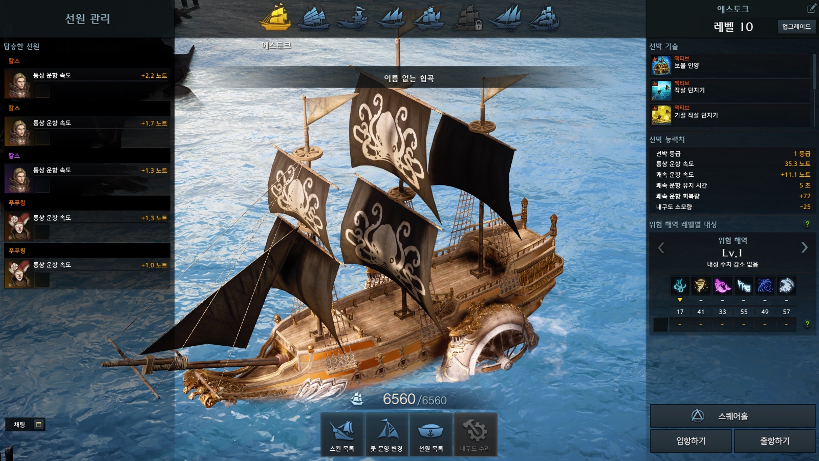 전체적으로 수집한 선원의 정보 난이도가 높은 것은 영웅 칼스라고 생각한다. 이때는 7레벨까지만 올리고 영웅 칼스를 제외하고 승선시키면 된다.