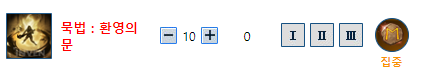 아이덴티티 게이지 수급용으로 사용하는 환영의 문은 정화와 포탈을 탄사람에게 피격이상 면역 버프를 부여할 수 있습니다. 2-2-2를 주로 사용하며, 정화가 필요 없다면 2-2-1을 채용합니다.