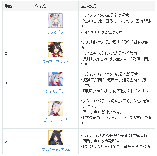 우마무스메 장거리 말 최강 순위 등급표