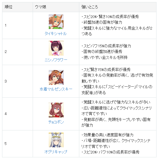 우마무스메 마일 말 최강 순위 등급표