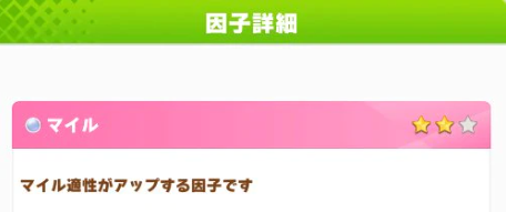 녹색 인자는 고유 스킬을 상속할 수 있다. ☆의 수가 많을수록 육성 개시에 힌트 Lv과 육성 도중 인자 발동률이 높아진다. 녹인자는 재능 개화 3성이상의 캐릭터에게 획득할 수 있기 때문에 참고만 하자.
