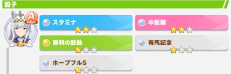 가장 좋은 방법은 어떤 스텟이라도 600이상의 스텟을 확보하고 URA 우승을 하는 방법이다. 마지막 육성이 종료되면 5가지 스텟 중 랜덤으로 1개가 추첨이되고 거기에서 1성 또는 3성이 랜덤으로 뜬다. 그렇기 때문에 노리는 인자의 수치를 600으로 마무리를 하는 것이 좋다.