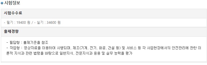 시험 개요는 생산관리에서 안전을 제외하고는 생산성 향상이 불가능 하다는 인식속에서 산업현자으이 근로자를 보호하고 근로자들이 안심하고 생산성 향상에 주력할 수 있는 작업환경을 만들기 위하여 전문적 지식을 가진 기술인력을