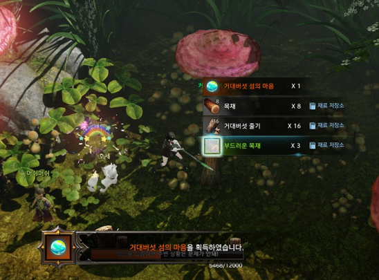맵에 있는 버섯(나무)를 벌목하면 일정 확률로 '거대버섯 섬의 마음'을 획득할 수 있습니다.