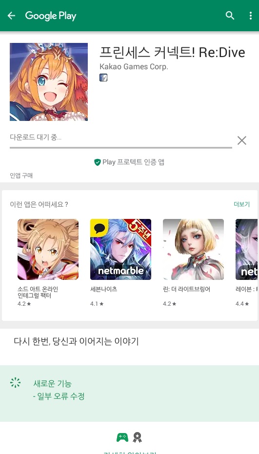 물론 여기서 구글 플레이스토어 로그인후 프린세스 커넥트 다운은 되지만 저 바스코 경우는 cygames 로고에서 넘어가질 않아서 너무 화가났습니다 - _ -;
