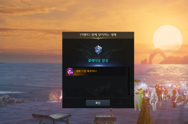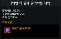 일리오스 입장 후 3분 뒤 [이벤트] 함께 맞이하는 새해 퀘스트가 진행됩니다.